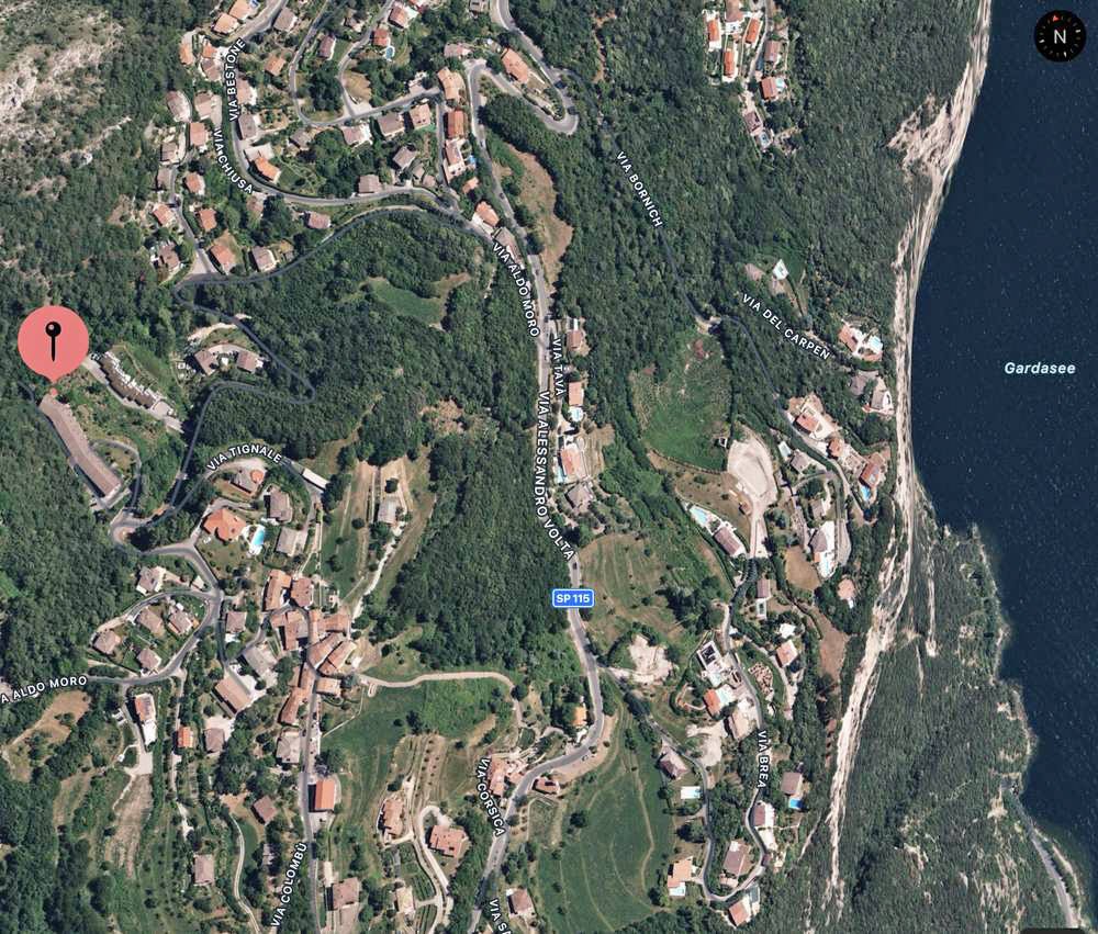 Die Wohnung befindet sich am Westufer des Gardasees südlich von Limone sul Garda in der Gemeinde Tremosine. Diese besteht aus 18 kleinen Ortschaften und liegt auf einer Hochebene mit traumhafter Aussicht auf den See sowie den Monte Baldo (Gebirgszug).
