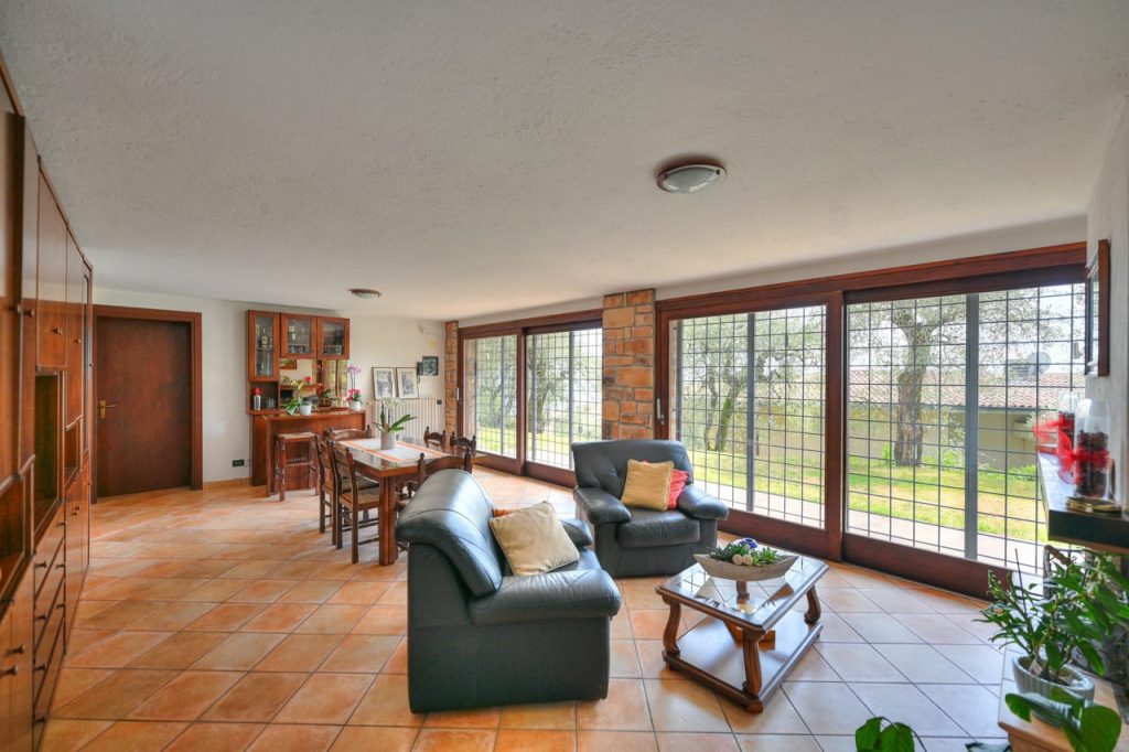 Zum Anwesen gehören eine Garage von beträchtlicher Größe, ein Swimmingpool mit Grillplatz und ein Garten von etwa 1.150 m², dazu kommt noch ein ca. 2.000 m² großes Grundstück mit etwa 100 Olivenbäumen dazu.